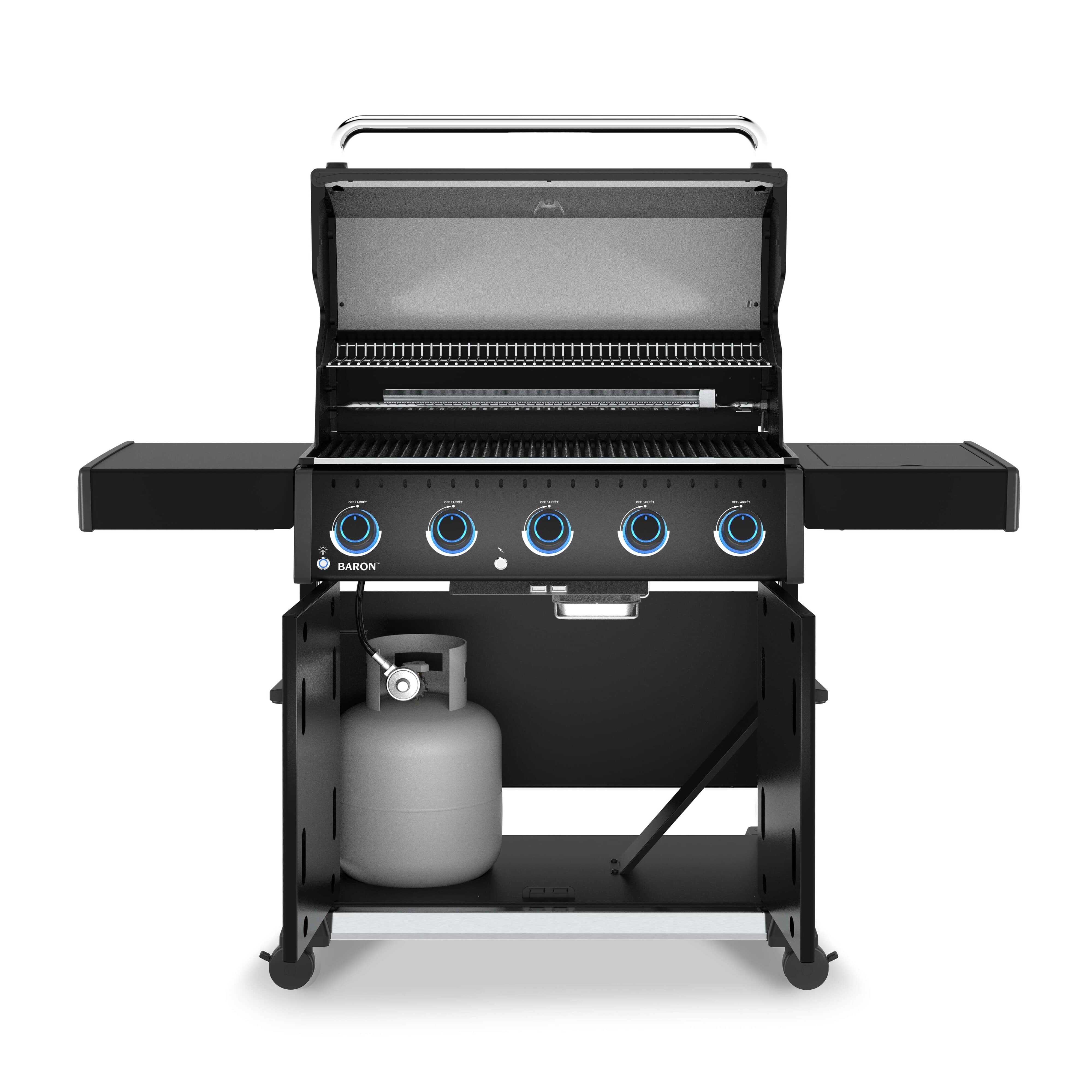 The Baron 520 Pro Shadow is a powerful and versatile grill designed to elevate your backyard cooking. With a 780 Sq. in. total cooking surface and 5 Dual-Tube burners producing 45,000 BTUs, it delivers exceptional performance for everything from quick weeknight dinners to weekend feasts.